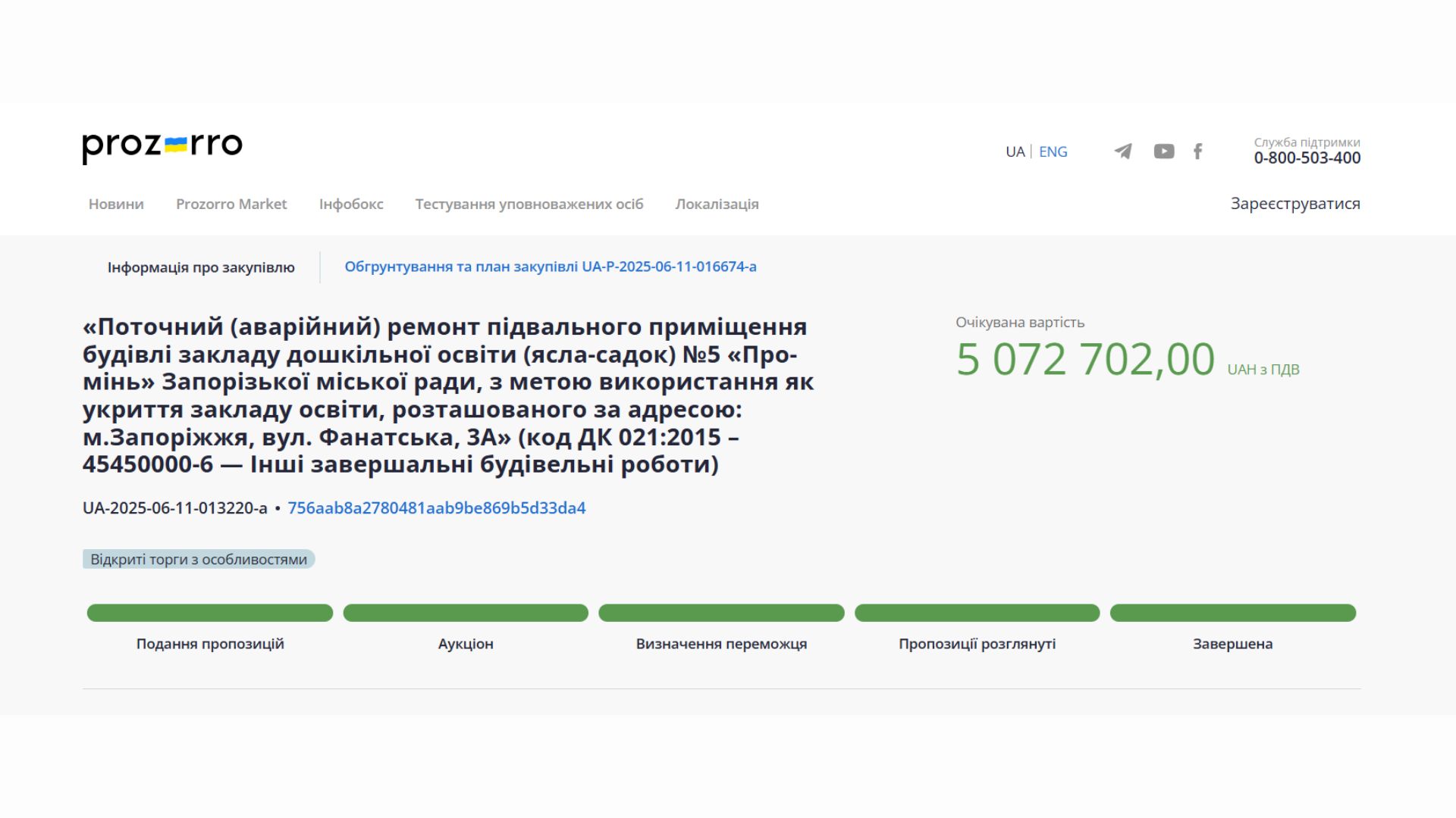 Запорізький окружний адміністративний суд розглянув позов Департаменту освіти і науки Запорізької міської ради до Східного офісу Держаудитслужби та скасував висновок аудиторів, яким вони визнали порушення під час закупівлі робіт із ремонту дитячого садка №5 «Промінь»
