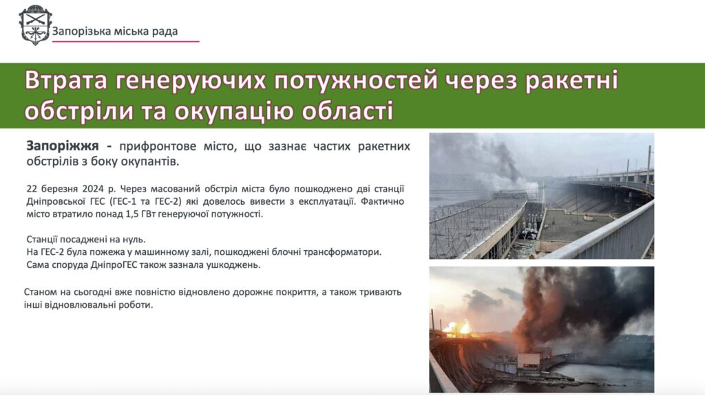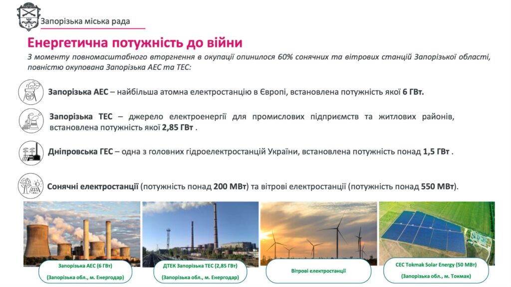 Після 2022 року ситуація змінилася: понад 60% відновлюваних потужностей опинилися на тимчасово окупованих територіях регіону. А саме місто втрачає потужності через ракетні обстріли.