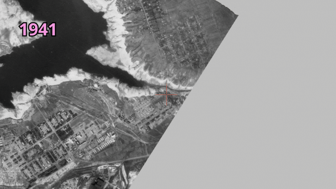 Найдавніше фото датується серпнем 1941 року. На ньому ще немає кооперативу, а є Дніпро і уривчастий берег, який схожий на природний витік річки.