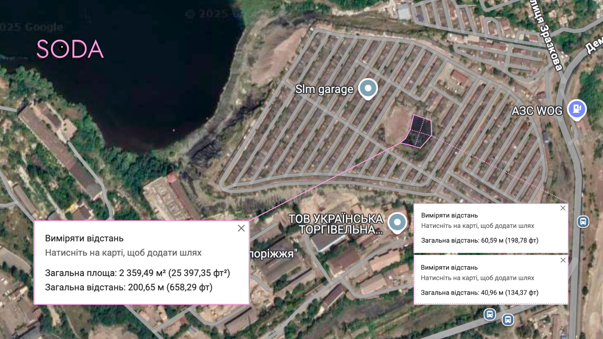 Тоді ж ми почали шукати в мережі більше інформації і знайшли ще одне відео на платформі YouTube від блогера Медок. Датоване 2023-м роком. На ньому чоловік піднімається до кооперативу з боку Дніпра і показує «озеро» та насипи біля нього.