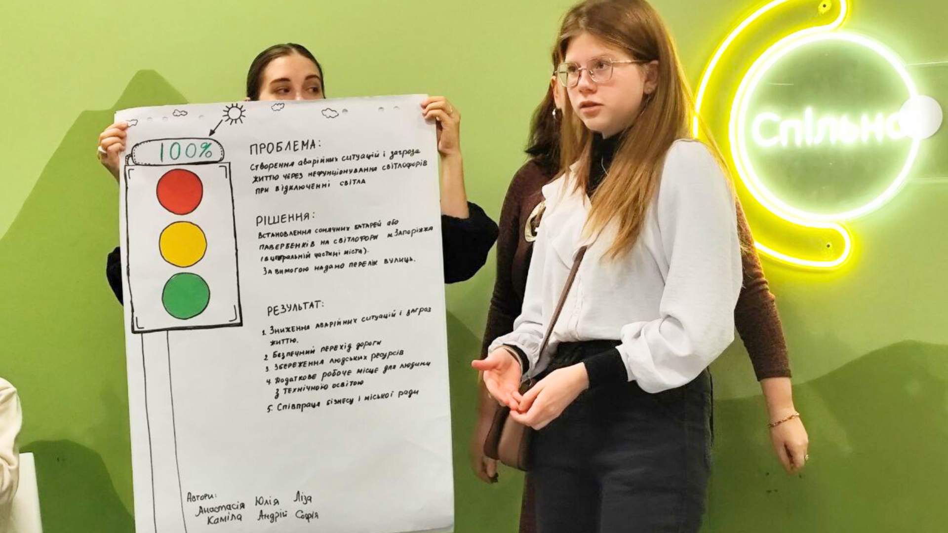Задля вирішення цієї проблеми група запропонувала встановити сонячні батареї з накопичувачами на світлофорі. Це не тільки дасть можливість зберегти їхню безперебійну роботу ввечері, але й створить робочі місця для техніків, які будуть встановлювати і забезпечувати справну роботу батарей.