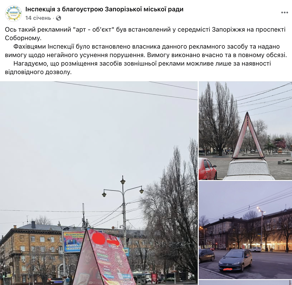 В Запоріжжі такого механізму немає, але Інспекція з благоустрою у своєю Фейсбуці періодично звітує про прибирання з вулиць автівок з рекламою, посилаючись на те, що розміщення зовнішньої реклами може бути тільки з відповідним дозволом. Мешканці скаржаться або ж інспекція бачить в соціальних мережах повідомлення про такий «рекламний мотлох на колесах» і вживає заходів.