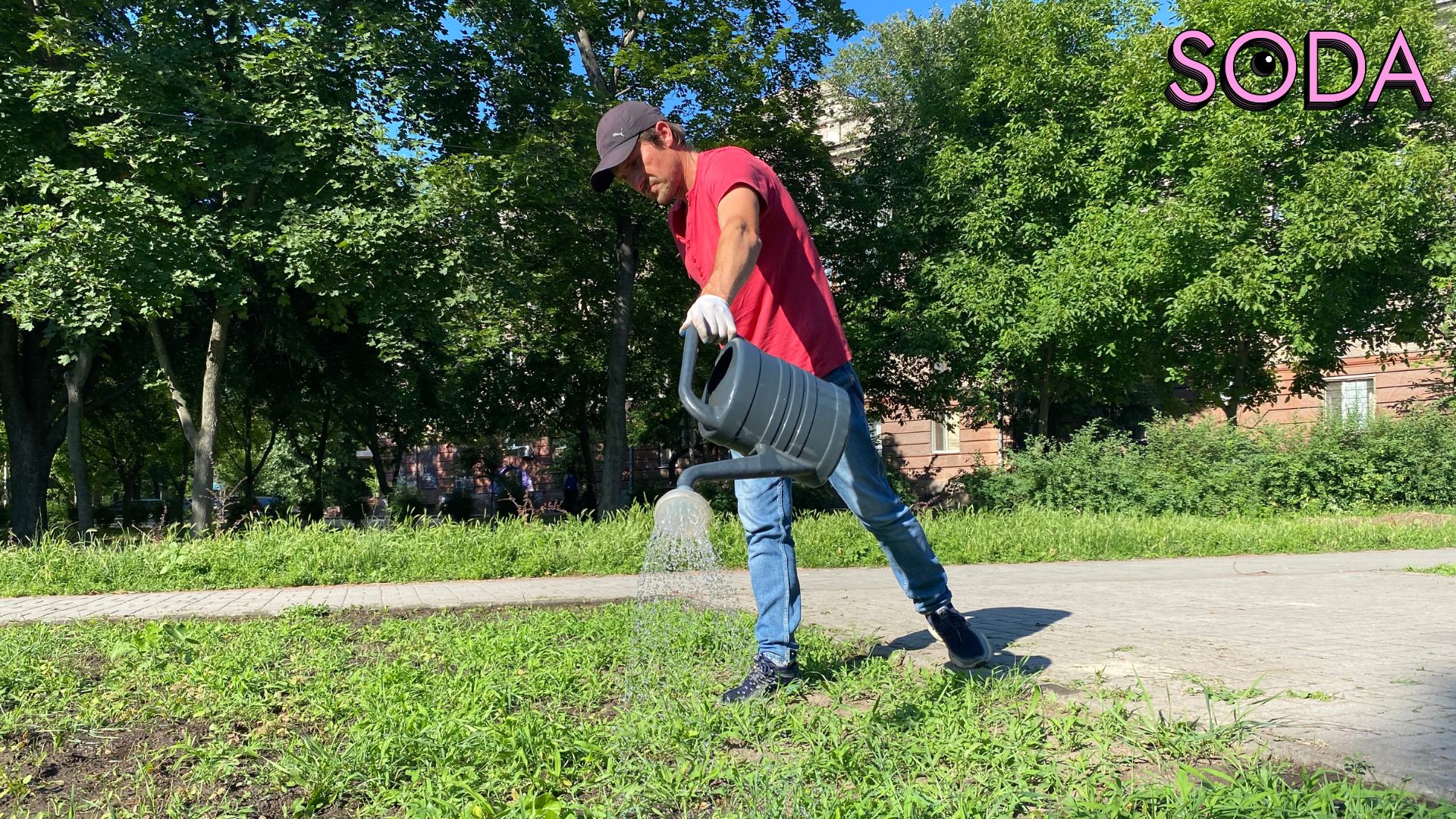 – Зараз ми прийшли доглядати, тому що підготовка ґрунту під висів такої суміші має бути така ж ретельна, як і під висів газону. Однак підготувати ґрунт, як хотілося б, ми не змогли, тому вийшло так, що наразі треба виривати ту саму берізку, яка вже вкорінилася, росте значно швидше ніж рослини, які ми висіяли. Вона застеляє землю і заважає іншим рослинам, які тільки починають свій життєвий шлях.