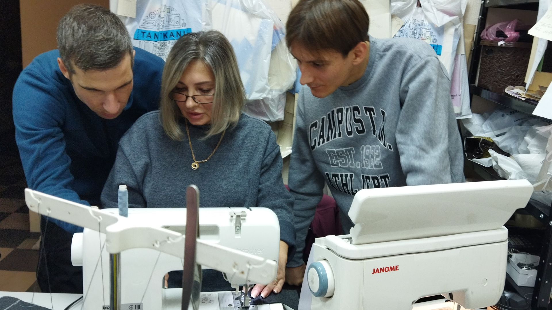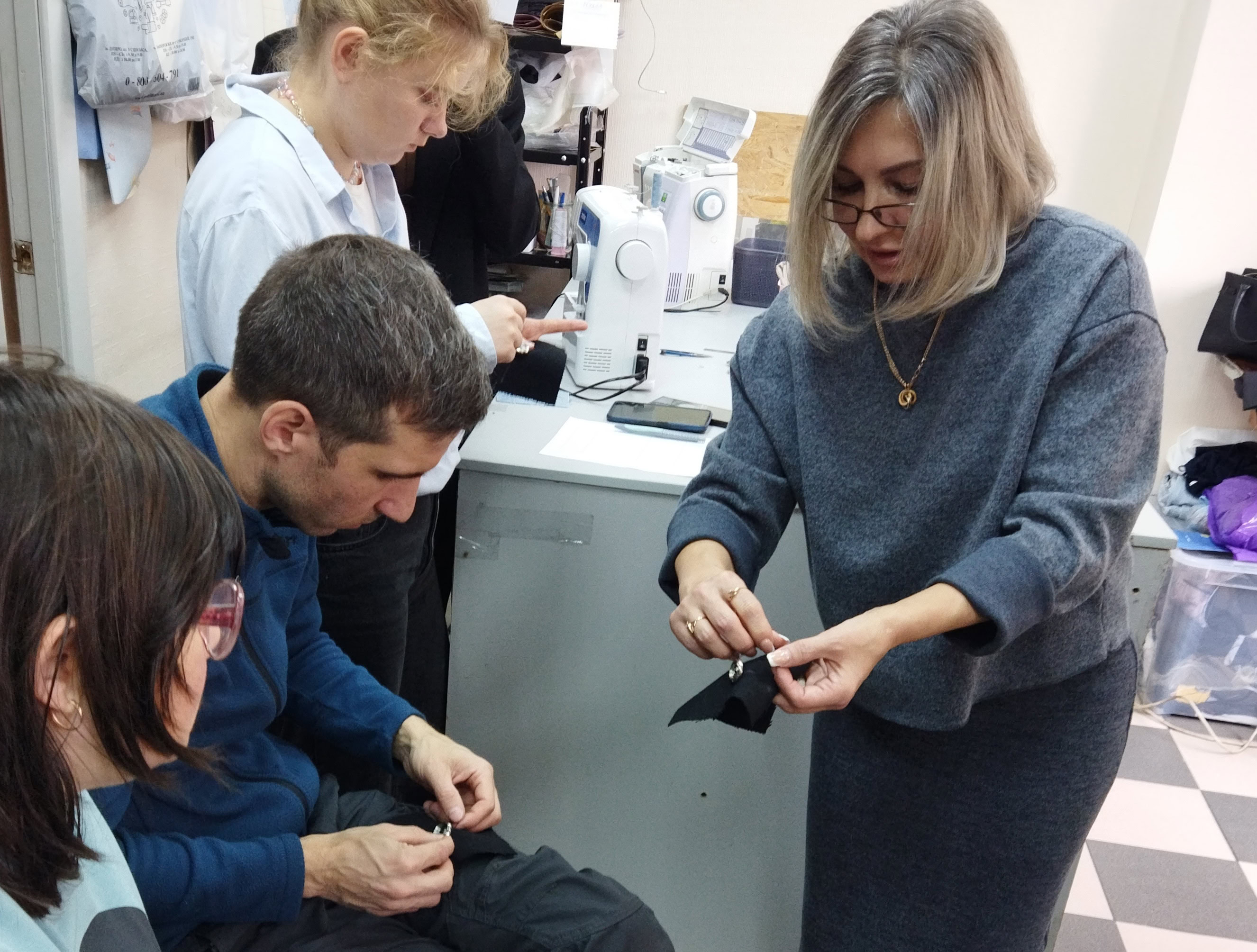 Спочатку учасникам роздають клаптики тканини, голки та усе необхідне. Потім Віталія починає ділитися премудростями пришивання гудзиків, паралельно відповідаючи на запитання учасників.