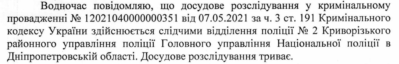 Ми звернулися до Дніпропетровської обласної прокуратури, щоб дізнатися, на якому етапі справа. Вони відповіли, що на сьогоднішній день досудове розслідування все ще триває.