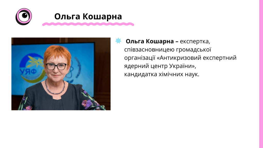Як це відбувається на практиці, пояснює експертка і співзасновницею громадської організації «Антикризовий експертний ядерний центр України» Ольга Кошарна: