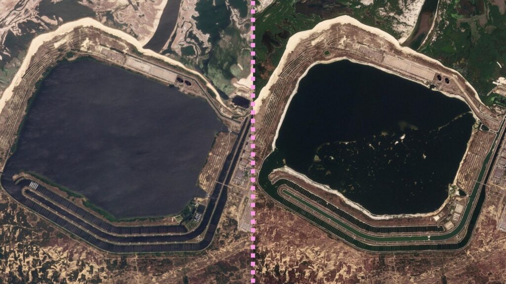 Погіршується і технічний стан станції. Зокрема, ставок-охолоджувач, від якого залежить безпечна робота реакторів, міліє. На проаналізованих нами супутникових знімках Sentinel у Copernicus Browser видно, що водойма поступово висихає – її площа скорочується, а берегова лінія поступово збільшується.