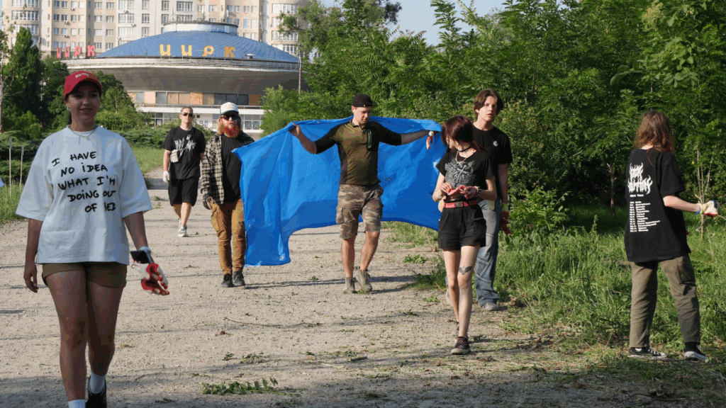 Прибирання проходить під музику, за яку сьогодні відповідальний Олег Бемза, організатор благодійних вечірок та концертів “Гараж паті”.