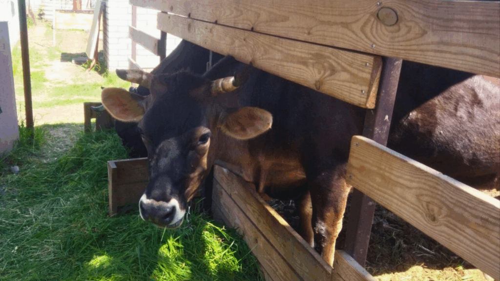 Це Джеся та Джулія. Вони джерсійської породи. Такі корови важать до 450 кілограмів та дають смачне, солодке та жирне (від 4,8 до 9% жирності) молоко.