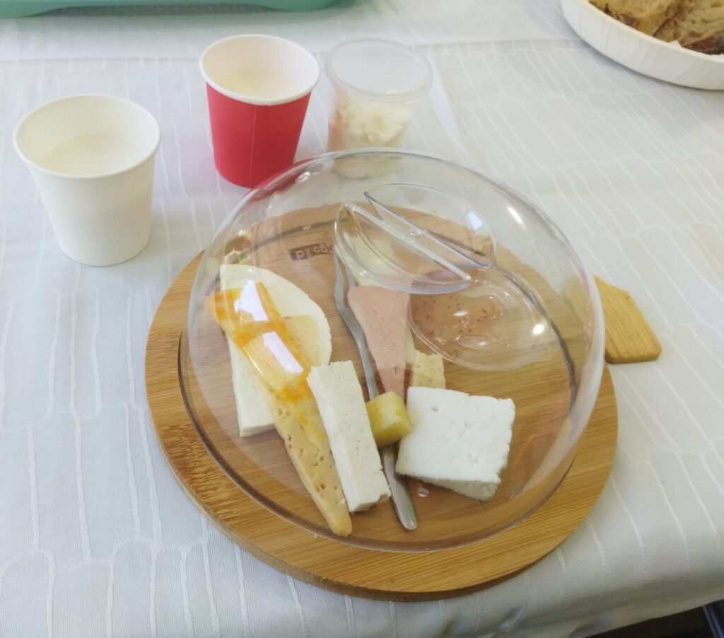 Закінчується екскурсія дегустацією фермерської продукції. Починаємо з молока. В білому стаканчику козине. За консистенцією воно як вершки. Не має характерного запаху та присмаку. Тому відрізнити його від коров’ячого неможливо.