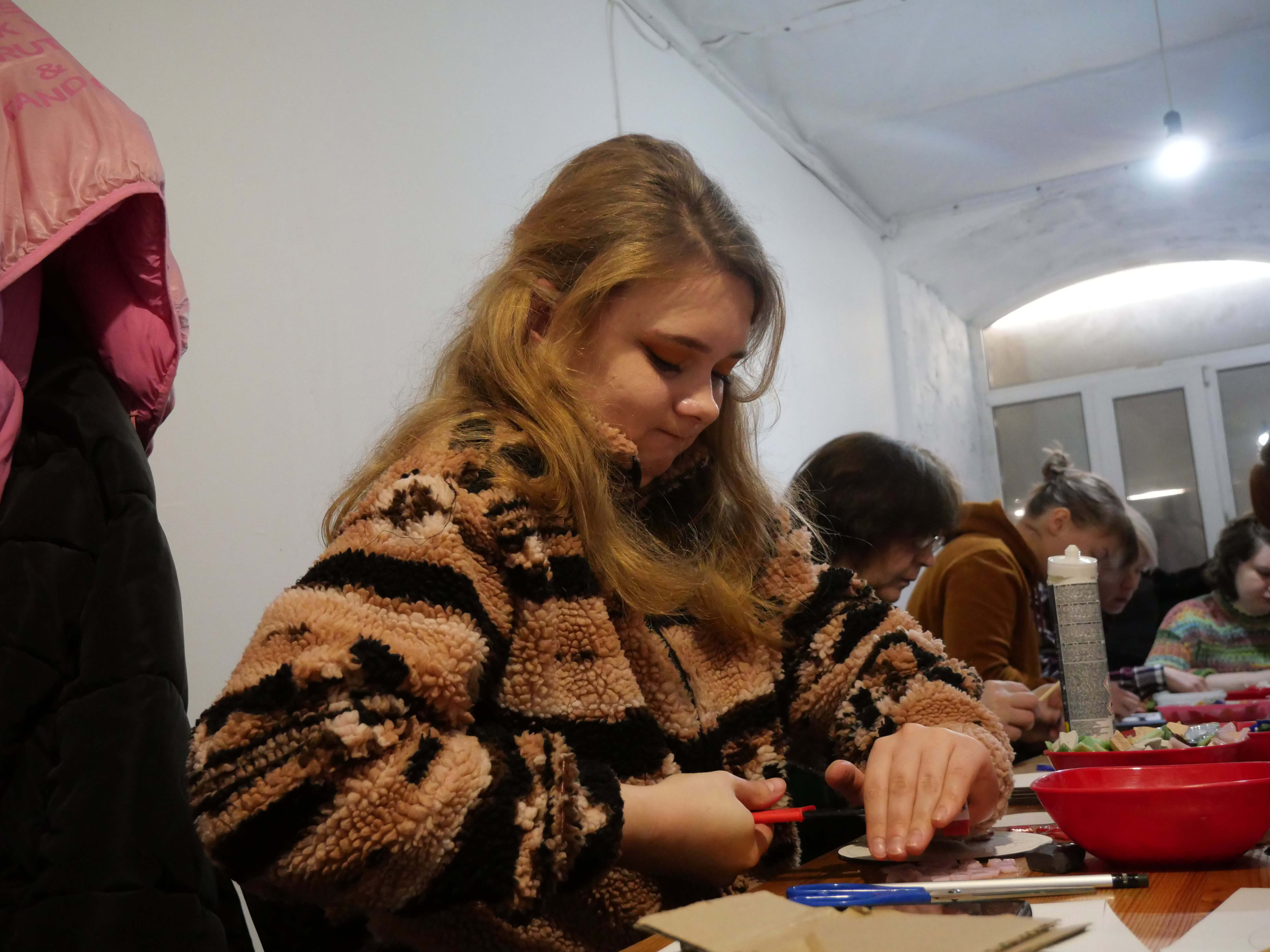 В невеличкій теплій кімнаті, за довгим столом, заставленим мисочками зі шматочками битого посуду, купою маленьких плиточок, якою частіше всього оздоблюють кухню чи ванну, зібралося з десяток людей, спраглих до творчості.