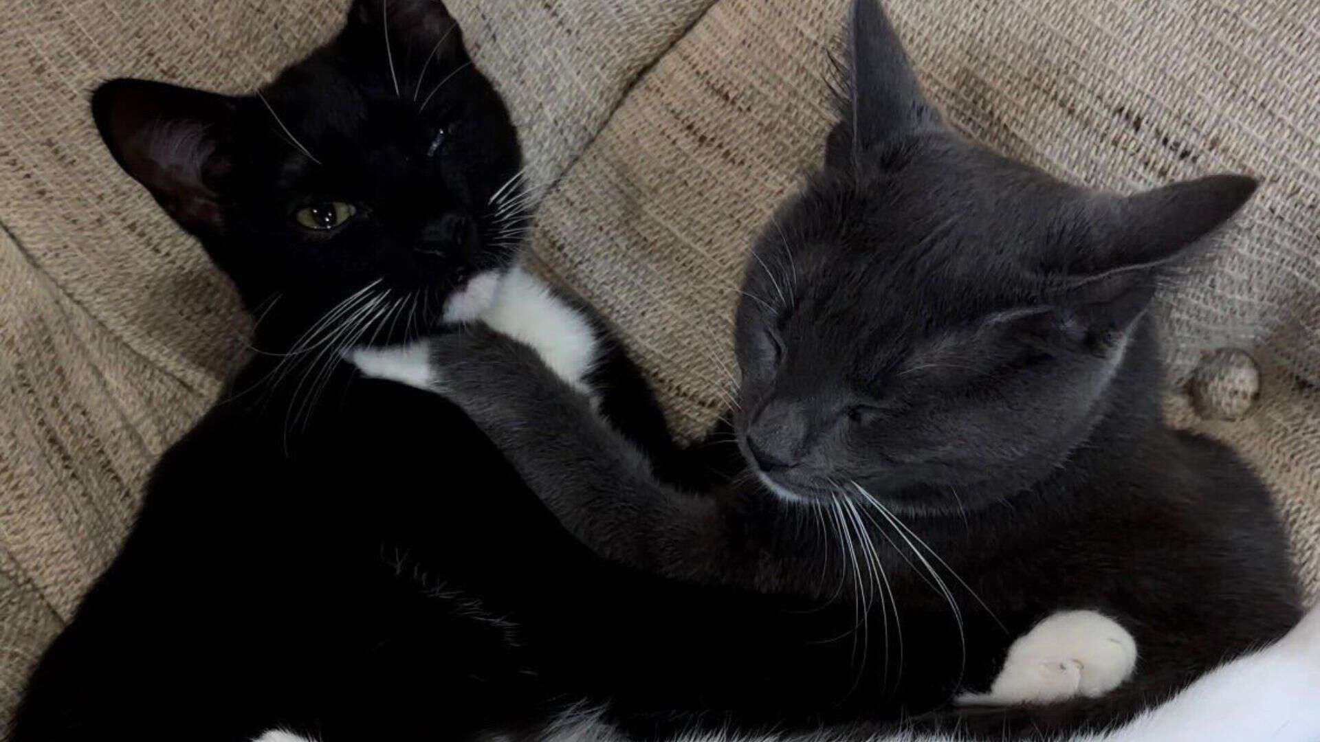 Після тривалого лікування та відновлення Мишка та Ночка знайшли прихисток у котокафе. Попри свій непростий життєвий шлях, сестрички залишилися дуже лагідними.
