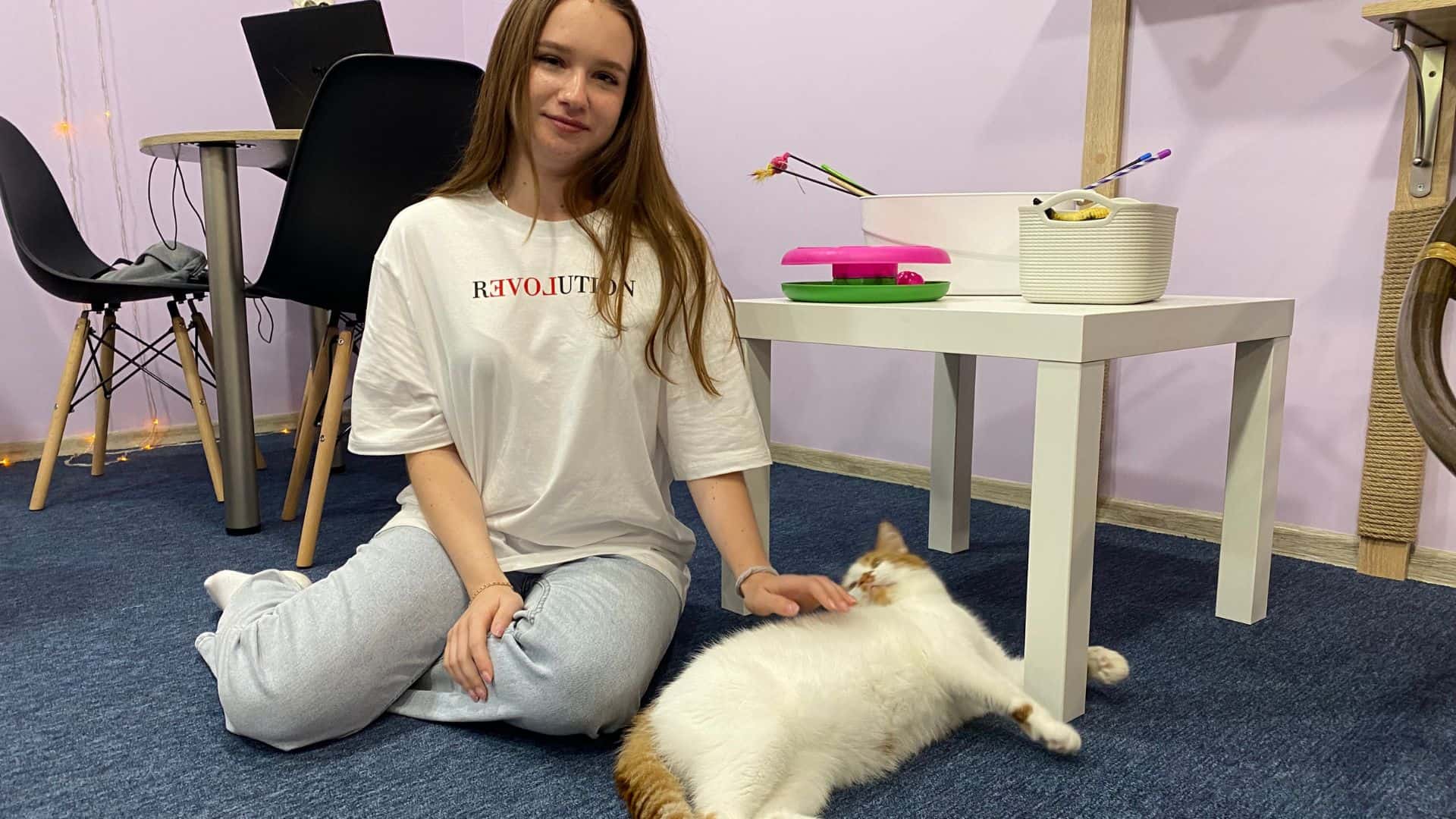 Валерія з молодшою сестрою прийшли в котокафе перший раз. Розповідають, що час проведений з котиками їм дуже сподобався та вони планують регулярно відвідувати пухнастих мешканців закладу.