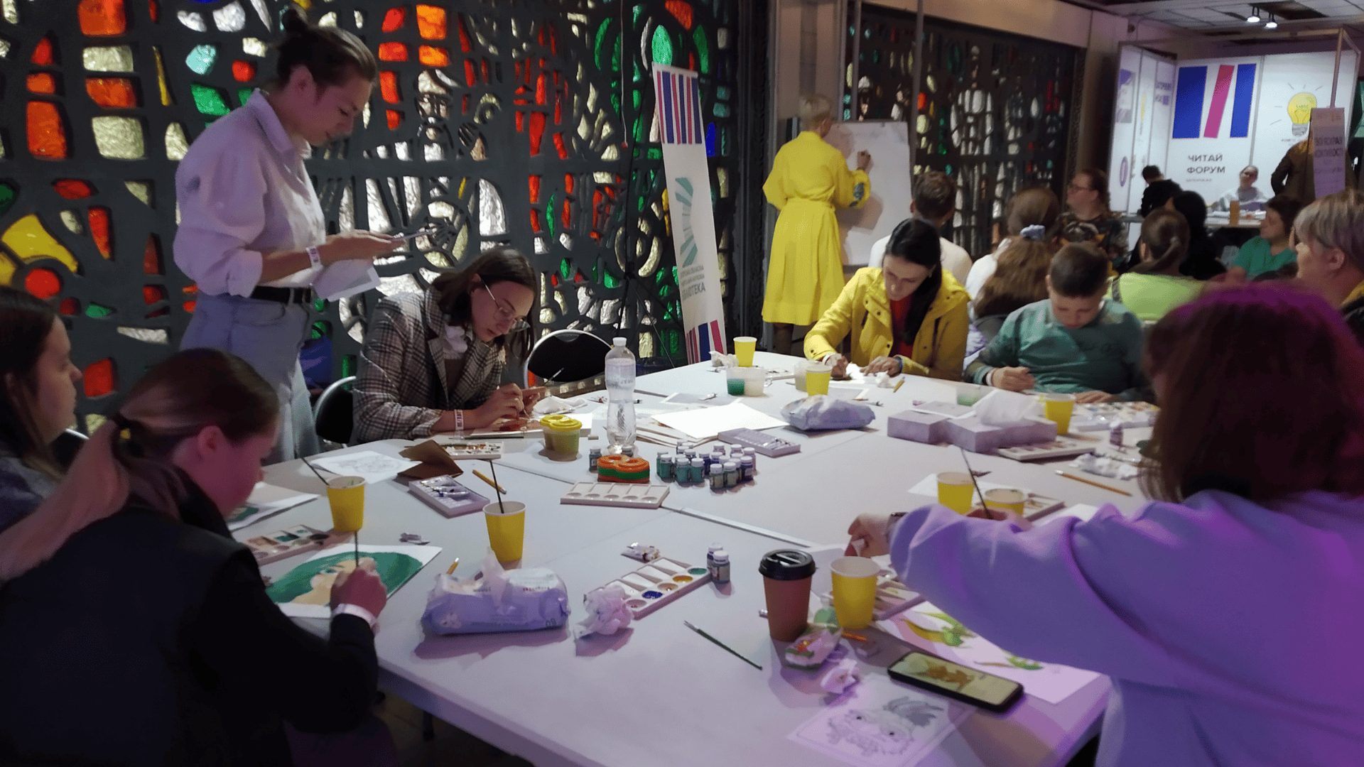 Наступний захід умовно «для дітей» зібрав, на дивно, багато дорослих. Бажаючих взяти участь у майстер-класі з «Малювання літературних персонажів» виявилось не мало.