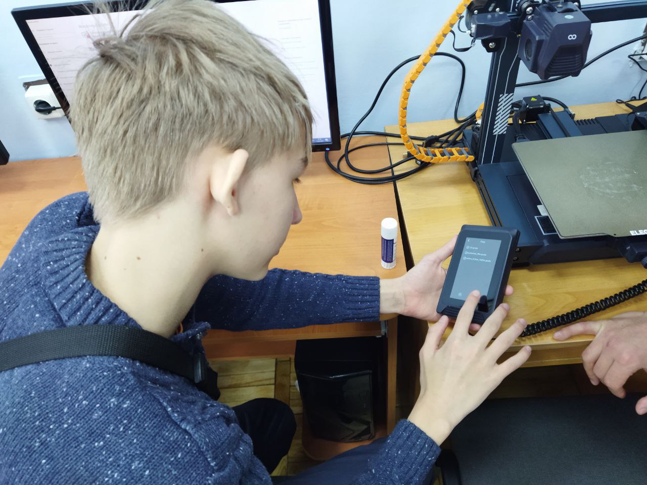 Теоретичну частину змінює практична. Дмитро розповідає про правила поводження із принтерами, показує процес створення моделі за допомогою свого комп’ютера та проєктора, і підлітки сідають за комп’ютери.