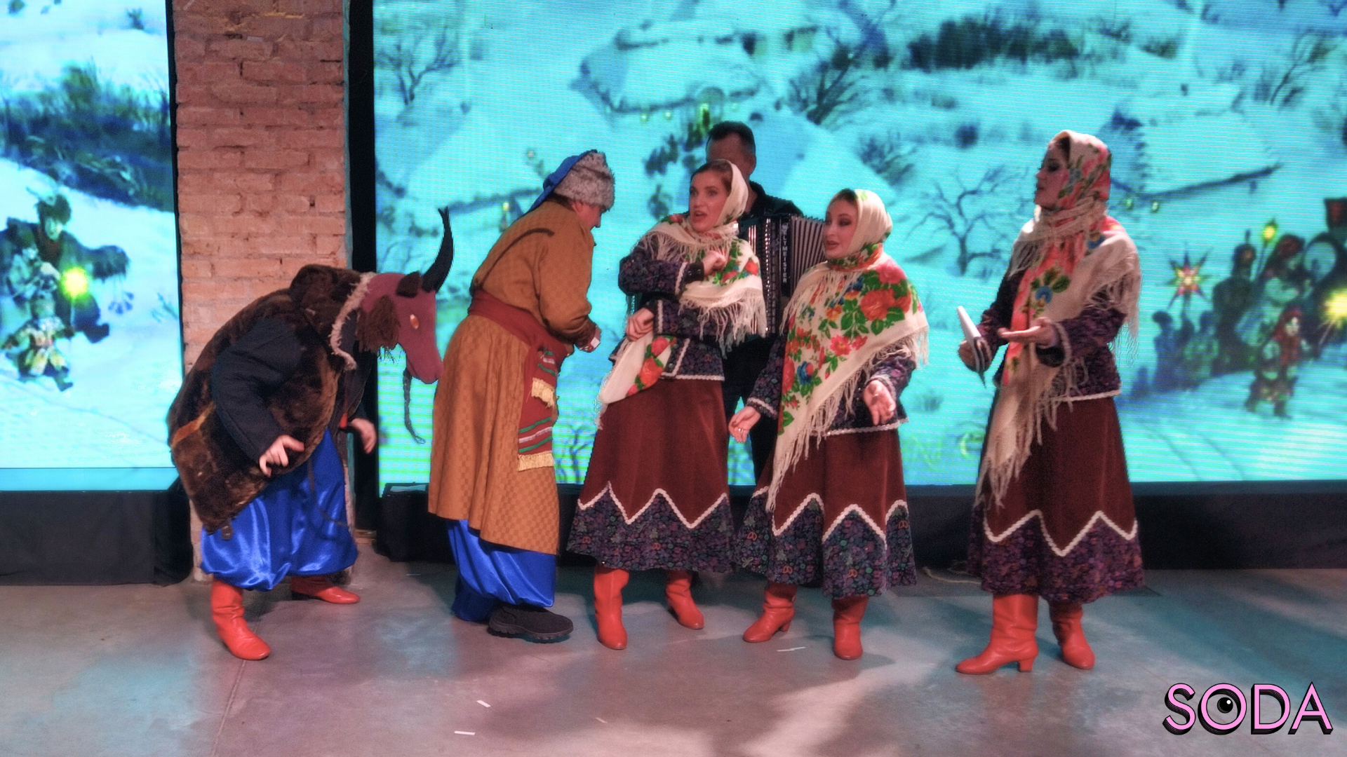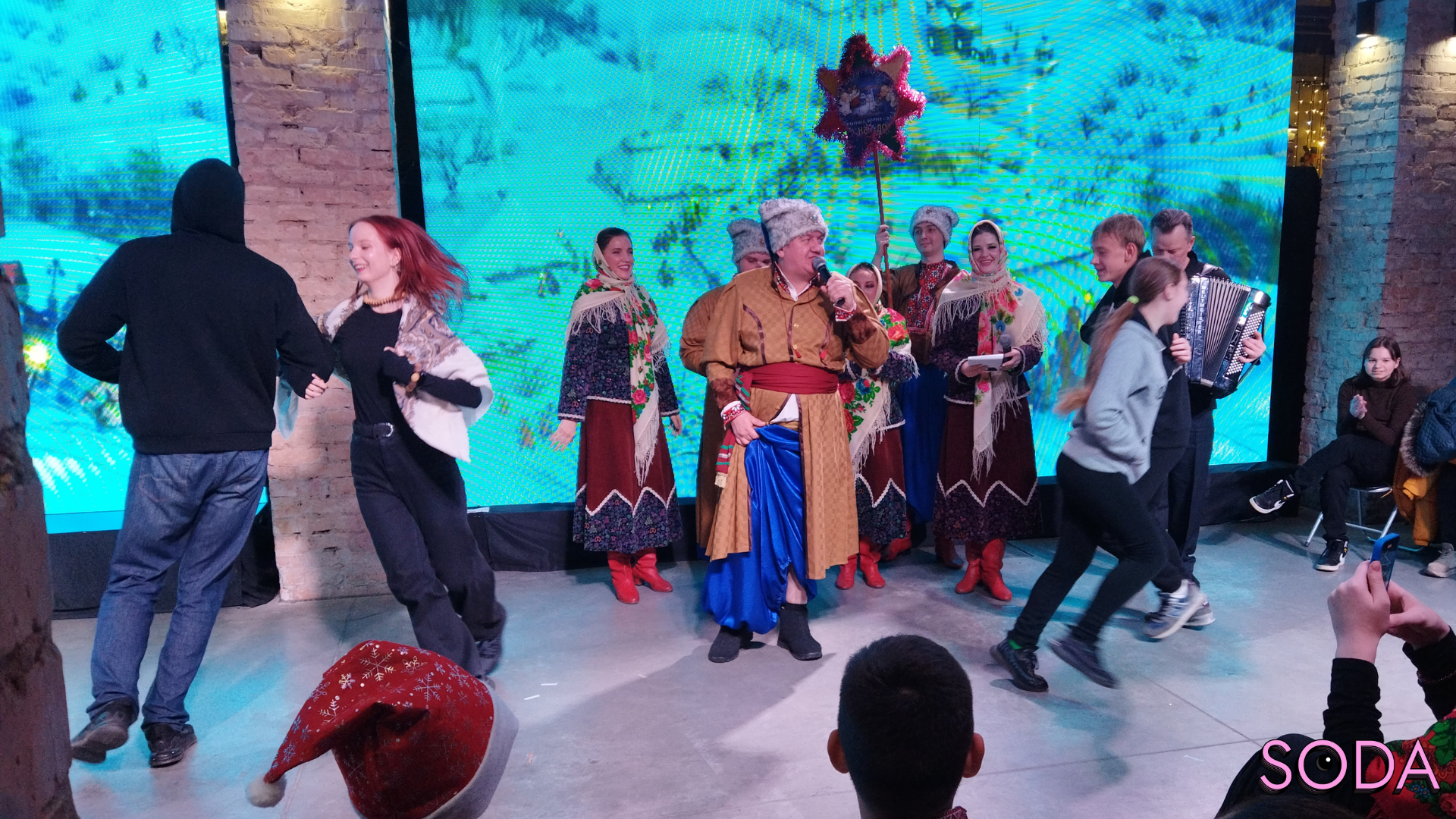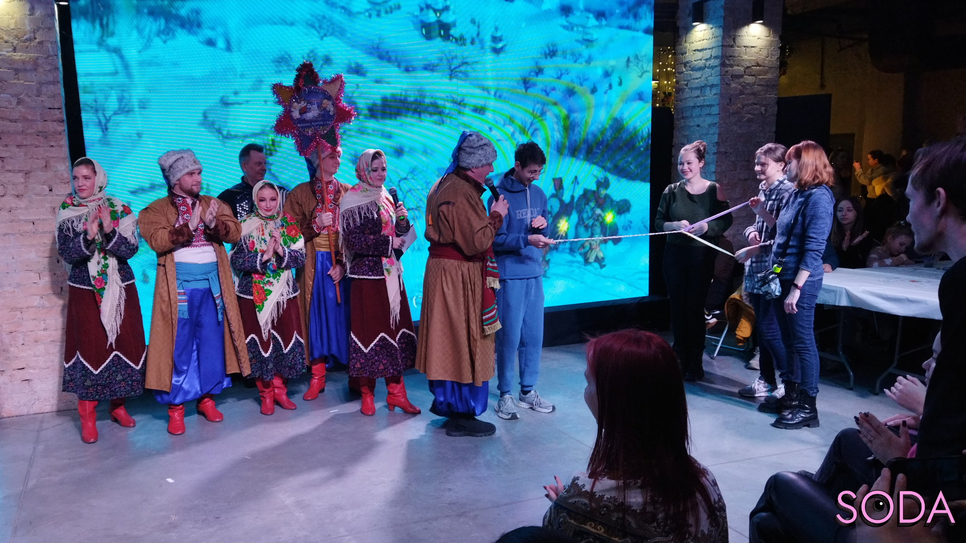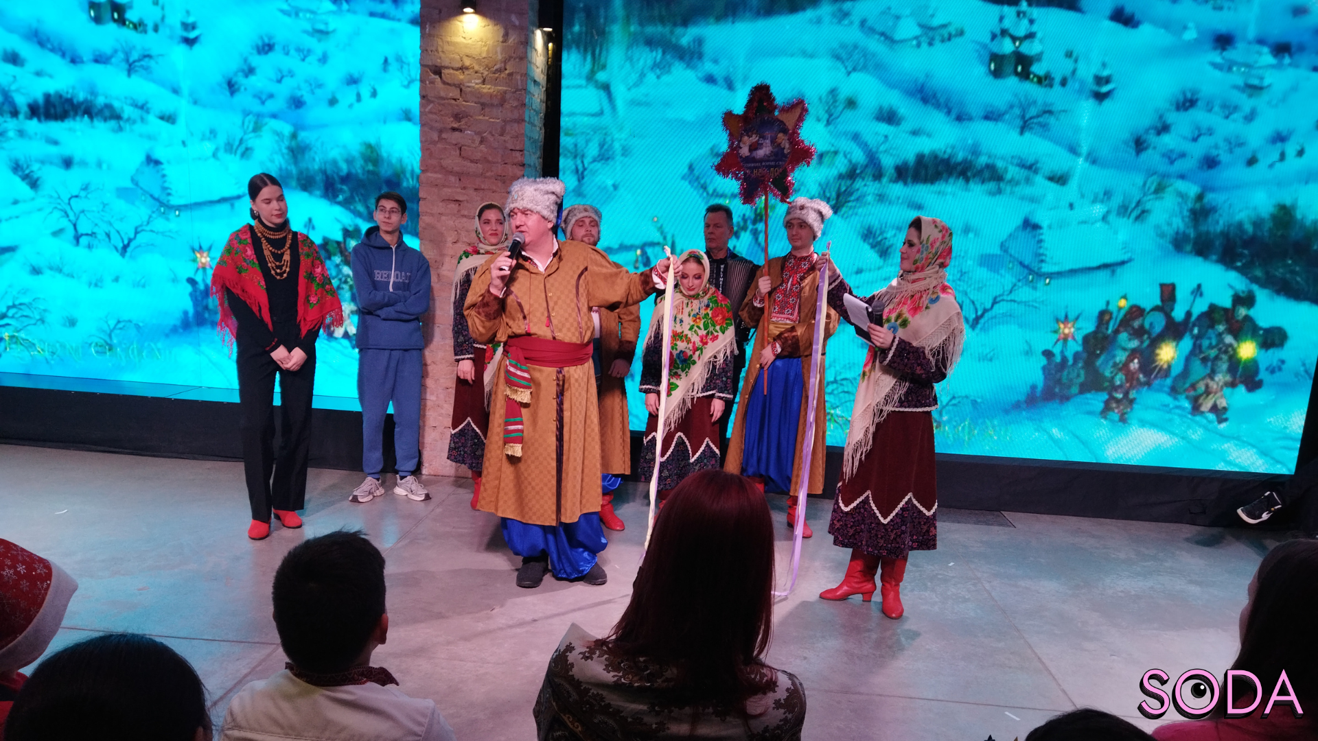 Після завершення усіх майстер-класів ведучі запрошують акторів з театру PERFORMANCE із постановкою «Різдвяний вертеп». Вони разом співають колядку «Добрий вечір тобі, пане господарю!». Далі плавно переходять до різдвяних традицій та розповідають глядачам про одну з них.