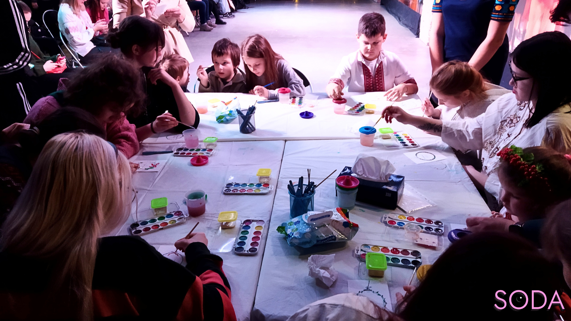 Глядачів запрошують взяти участь в одному з трьох майстер-класів на вибір: з вироблення різдвяних листівок, різдвяного віночка чи різдвяної зірки. Деякі обирають майстер-класи, хтось йде розглядати ярмарок.