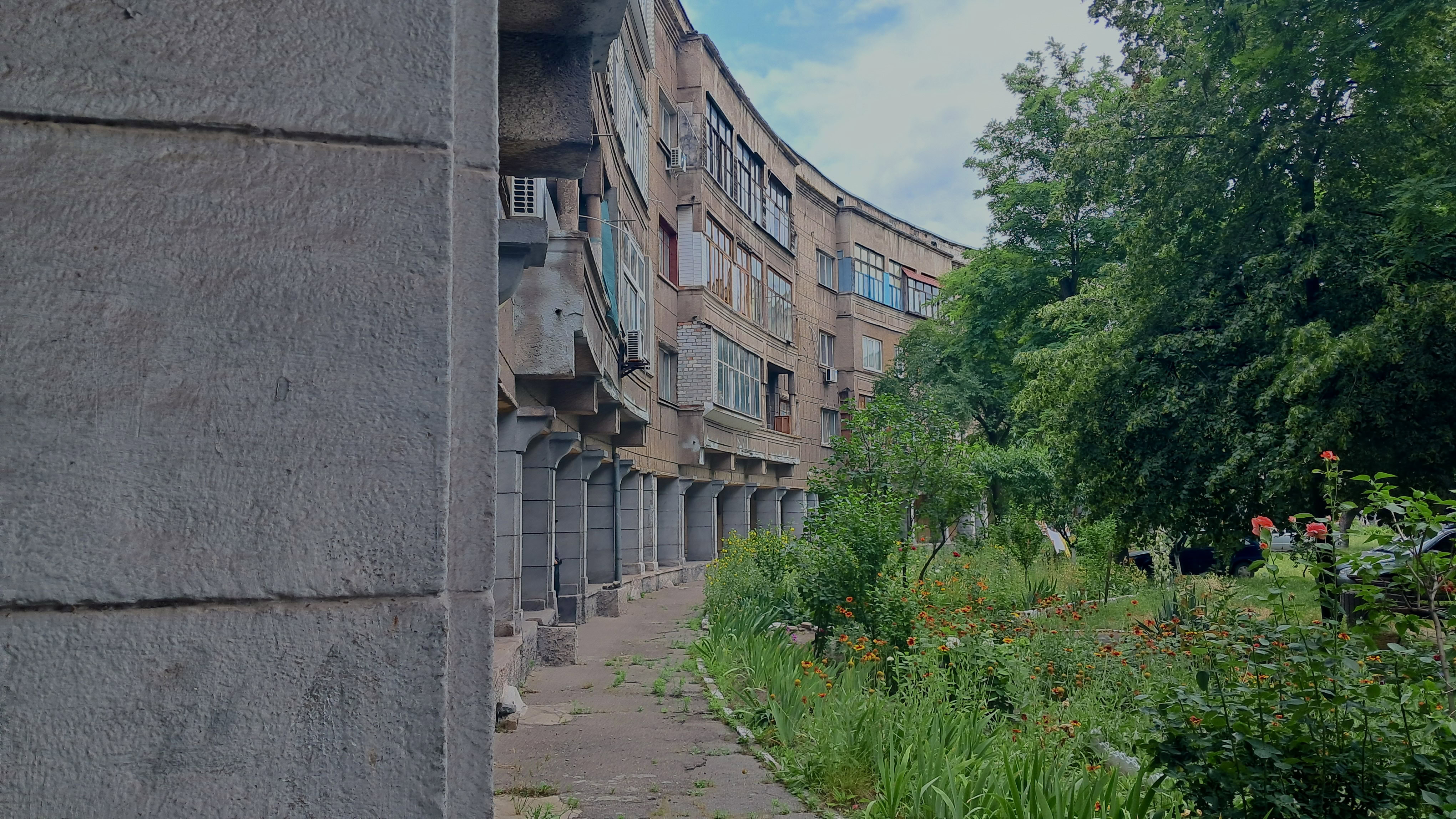 Вийшовши знову на проспект Металургів, ми рушаємо далі вздовж вулиці, а згодом спускаємося на Дружній проїзд. Опиняємось у дворах житлових будинків, зведених свого часу для працівників Запорізького металургійного комбінату.