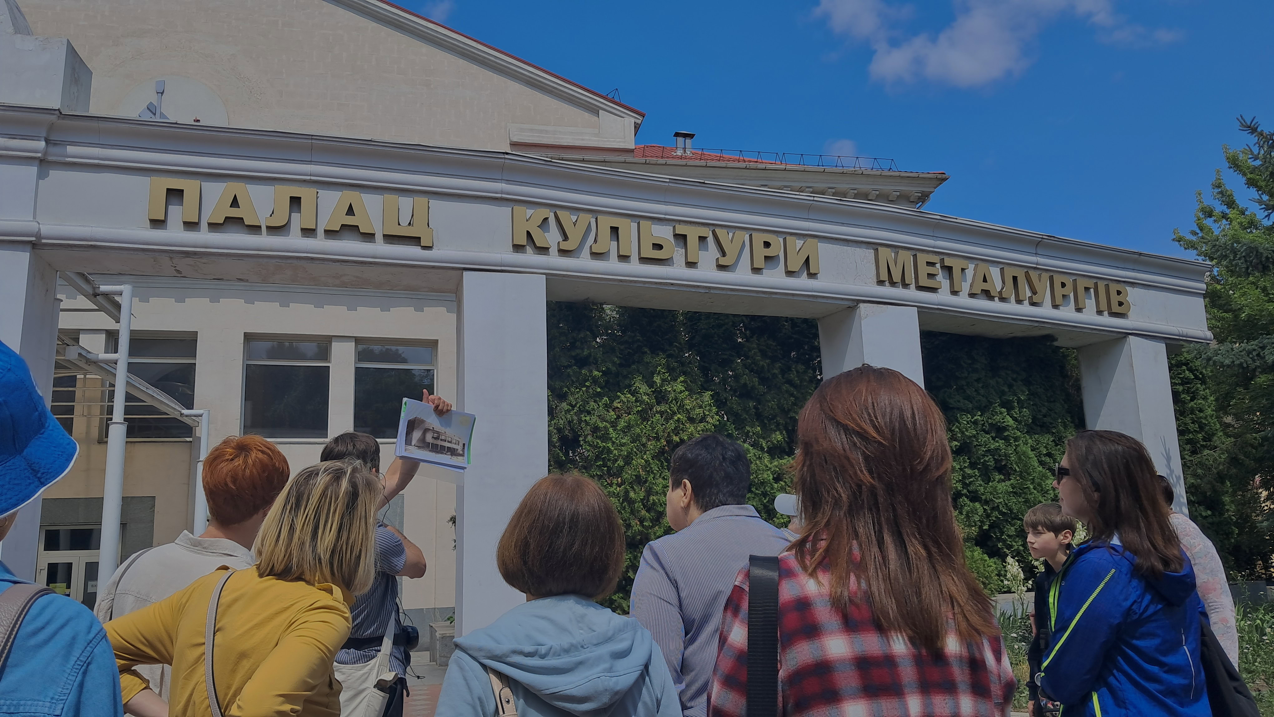 – А ось і клуб-їдальня, – оголошує екскурсовод і вказує на Палац культури металургів.