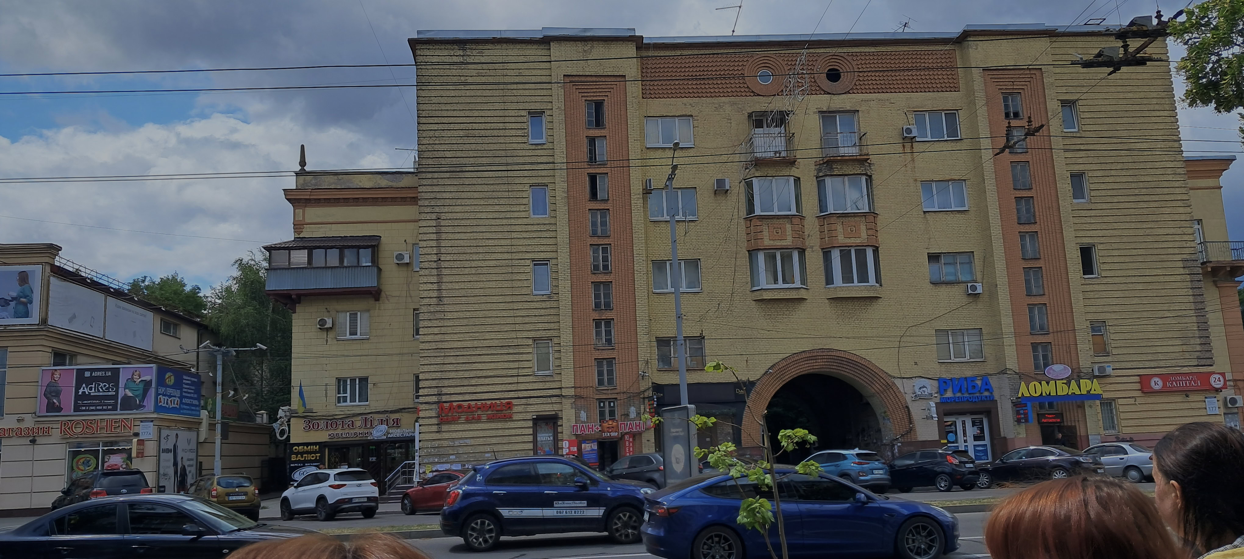 Група повертається на проспект Металургів, переходить дорогу і перед очима з’являється наступна архітектурна точка маршруту: будинок-блок. Масивна споруда займає цілий квартал, тож і назву отримала відповідну «блок».
