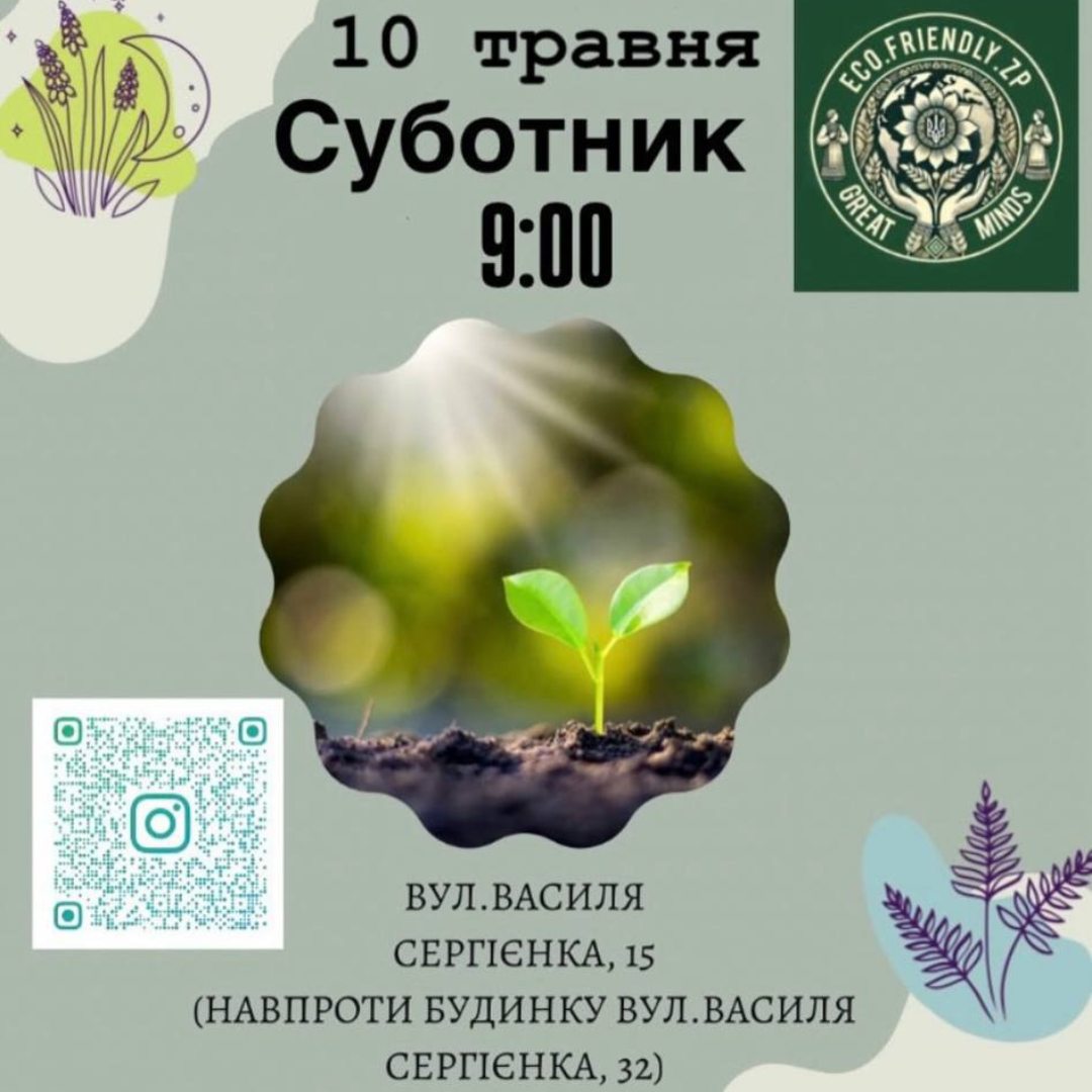 Громадська організація «Еко Френдлі Зп» запрошує долучитися до суботника/толоки в Хортицькому районі.