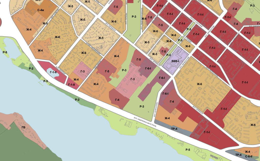 Друга ж ділянка, ближче до Набережної, розташована у зоні Ж-4, яка дозволяє зведення мішаної багатоповерхової житлової забудови. Цільове призначення зараз – Для розташування багатофункціонального житлового комплексу.