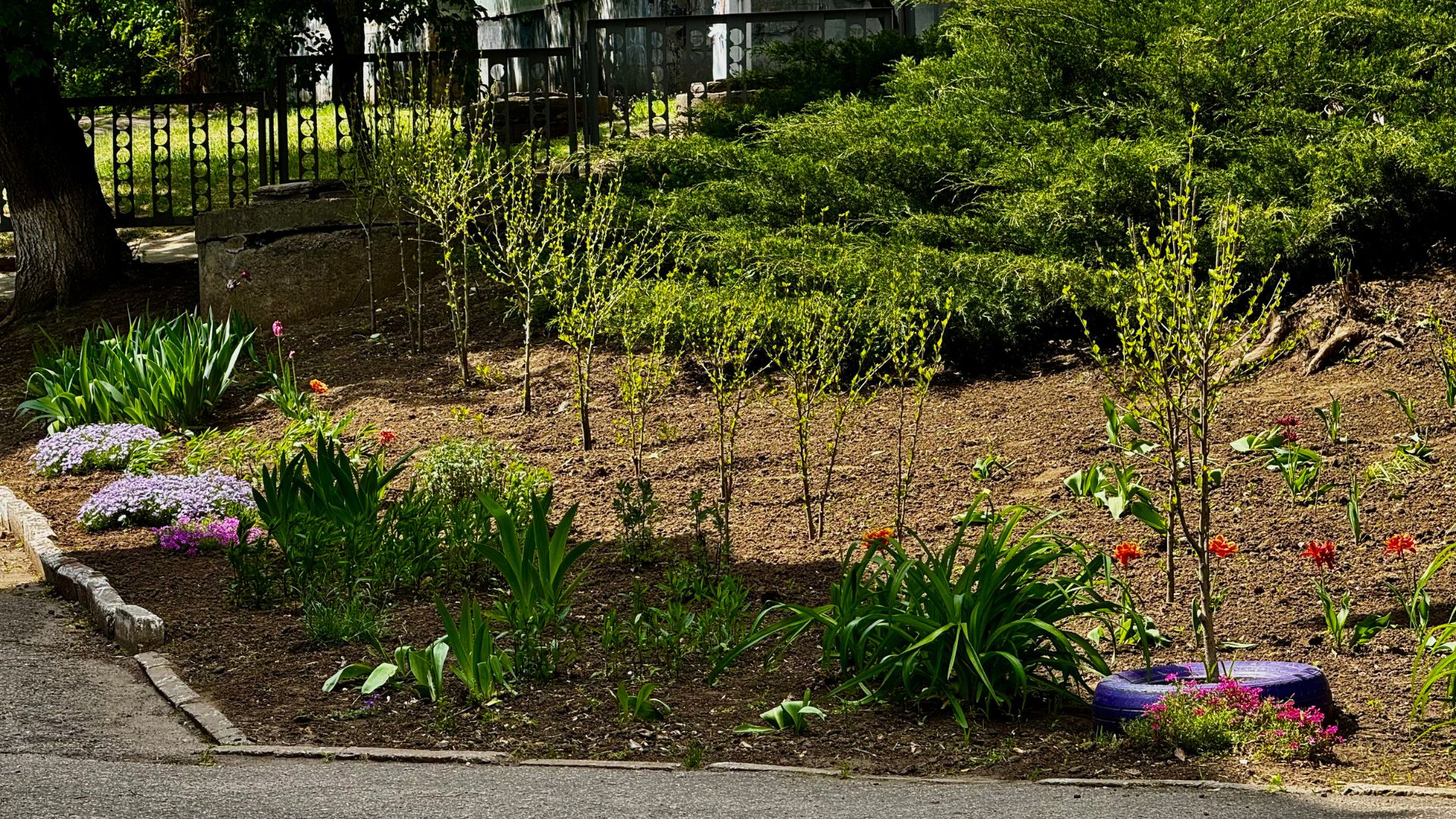 – Ми хочемо, коли вони вже трішки розростуться, з них форму робити, обрізати, зробити кругленькими. Мріємо ще встановити тут лави, – ділиться з нами планами директорка.