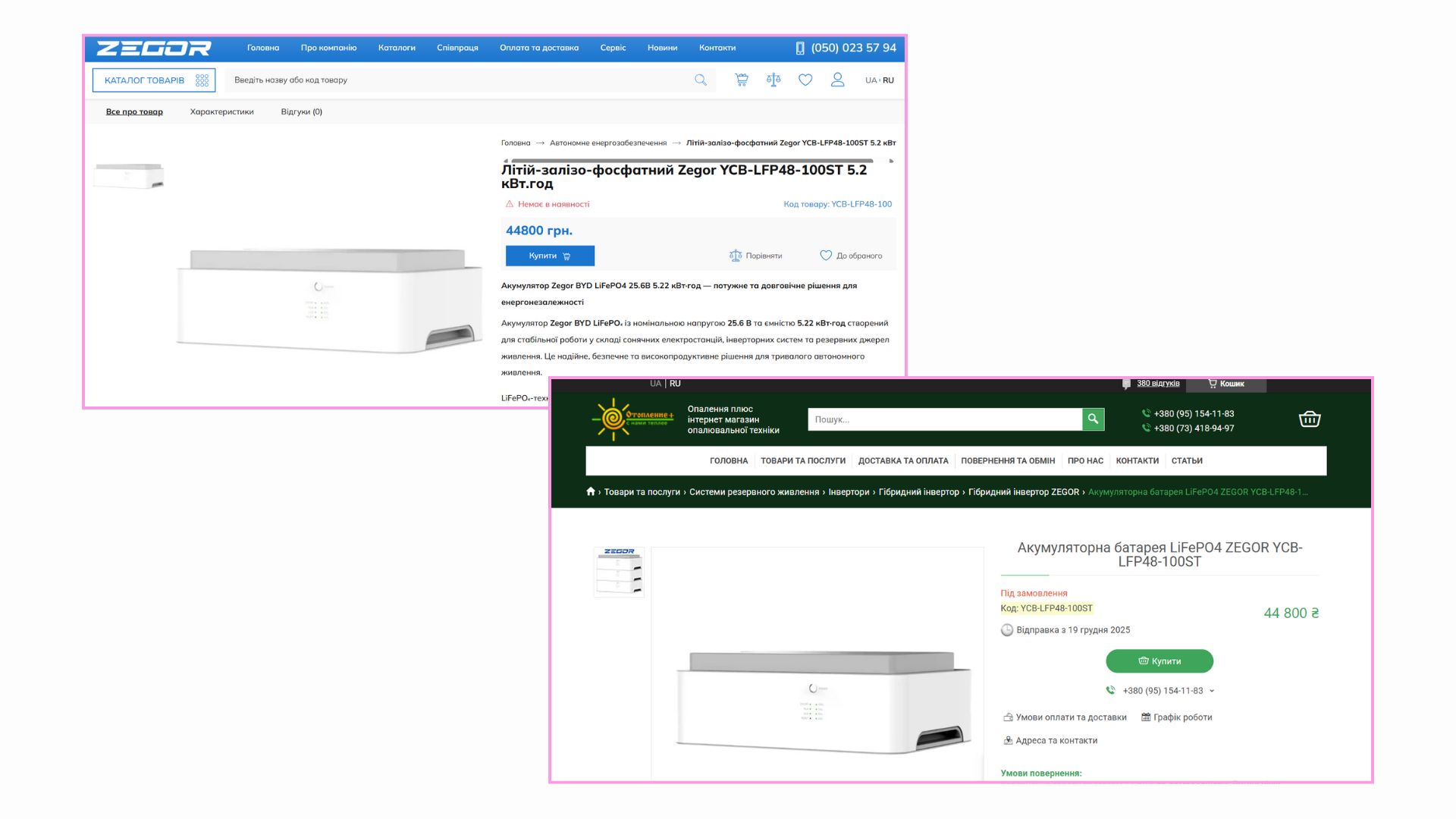 Аналогічна ситуація і з акумуляторними станціями. На сайті «Zegor» та «Опалення+» до 45 тис. грн на ринку проти 52 тис. грн у контракті. Переплата за 6 акумуляторів близько 42 тисяч.