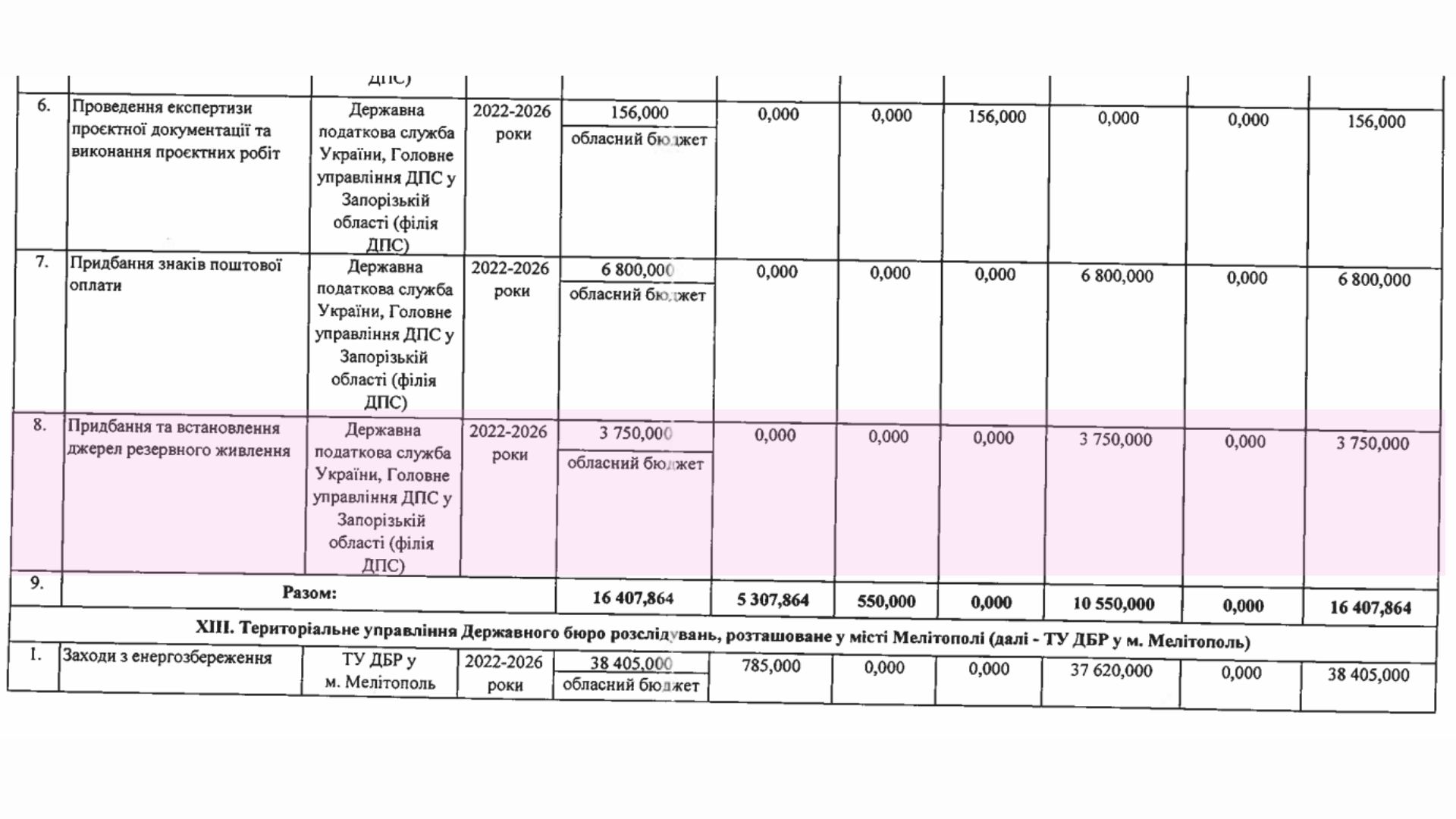 4 грудня Головне управління Державної податкової служби у Запорізькій області оприлюднили закупівлю на придбання та встановлення джерел резервного живлення. Процедуру провели без відкритих торгів. У поясненні податкова послалася на регулярні відключення електроенергії, через що 252 співробітники не можуть повноцінно працювати.