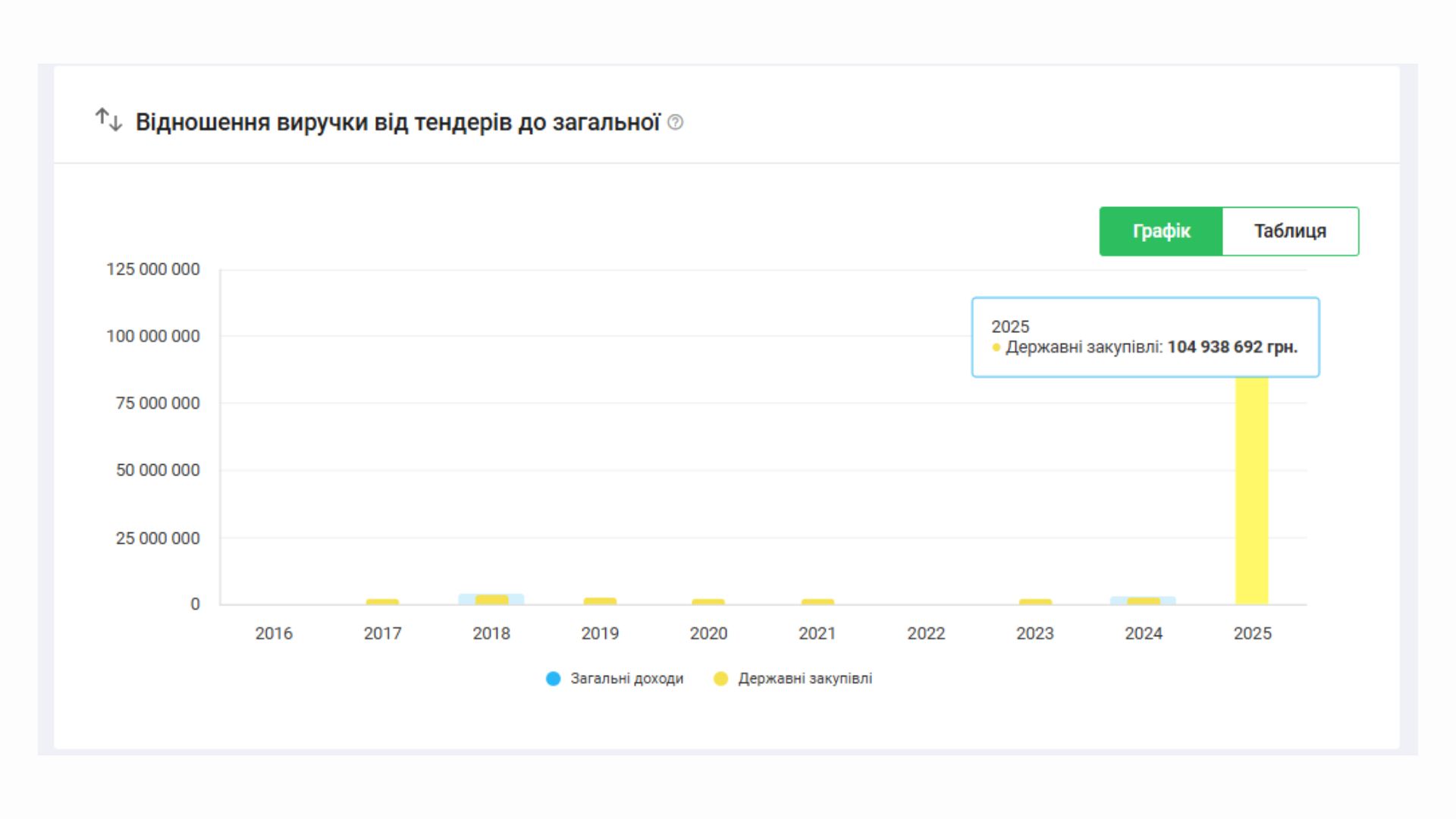 Фірма, заснована у 2009 році, почала брати участь у державних тендерах тільки в цьому році. Це її четверта закупівля. Всі інші три теж для запорізького обласного військкомату, загальною сумою на 121 мільйон.