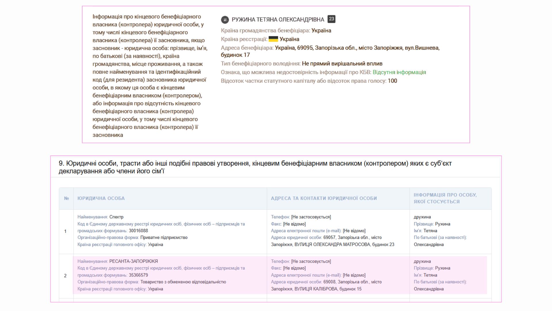 «Ресанта-Запоріжжя» менш відома на ринку. Згідно з даними YouControl компанія раніше не отримувала державних підрядів. Власниця Тетяна Ружина, дружина Юрія Ружина, який у 2020 році балотувався на посаду міського голови Запоріжжя.