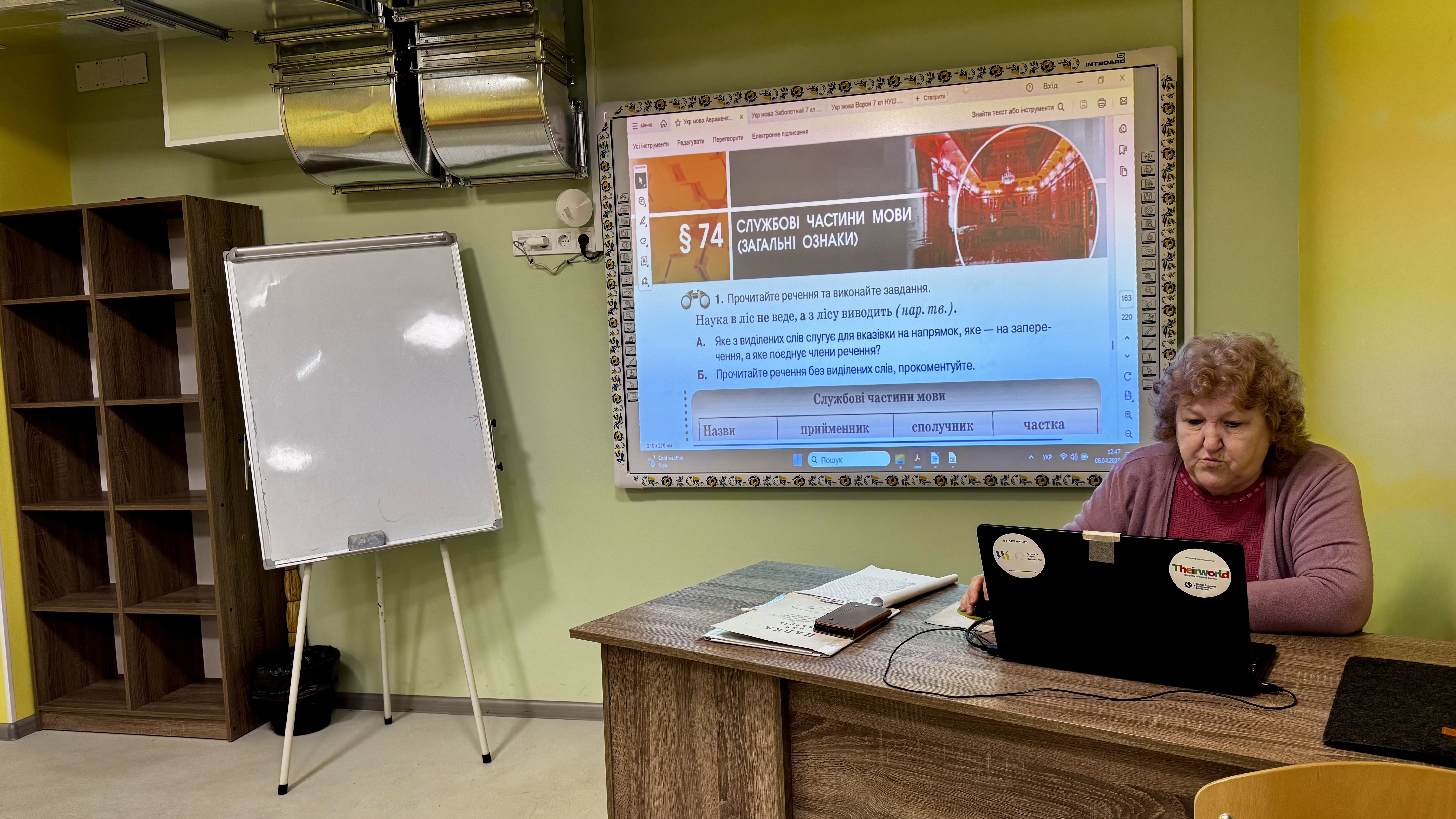 – За проєктом тут повинно бути два т’ютера, вони так називаються. Один т’ютер працює в першу половину дня, інший в другу. Один був мій вчитель, інший не мій. А зараз обидва вчителі мої. Звісно, у кого є можливість працювати в першу зміну чи в другу.