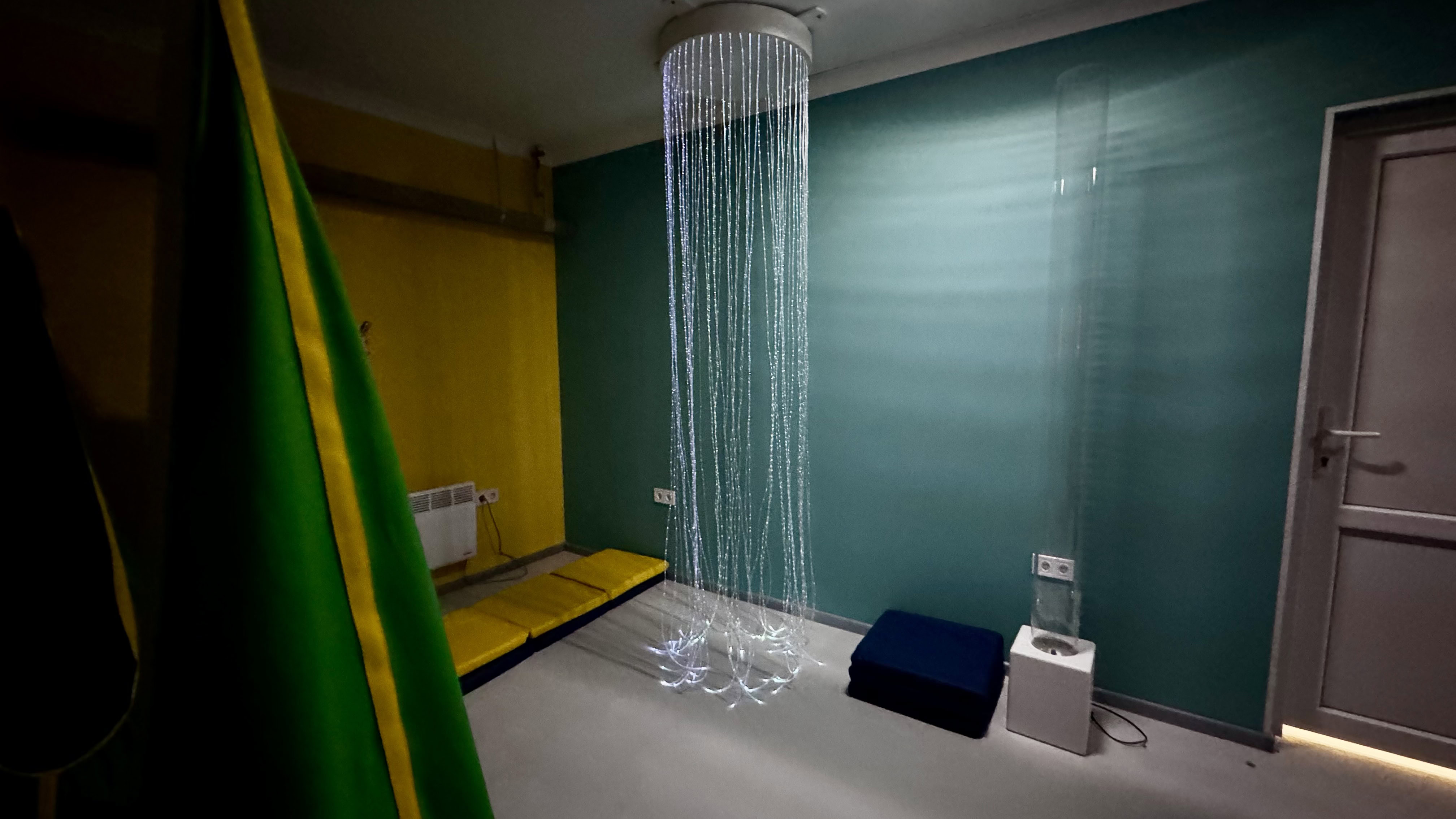 – Оце особистий простір для дитини, – показує Аркадій Григорович та вимикає світло. Медуза підсвічується м’яким, приємним білим світлом. – Якщо дитина відчуває якийсь дискомфорт чи ще щось, то туди заходить. Так формується особистий простір.