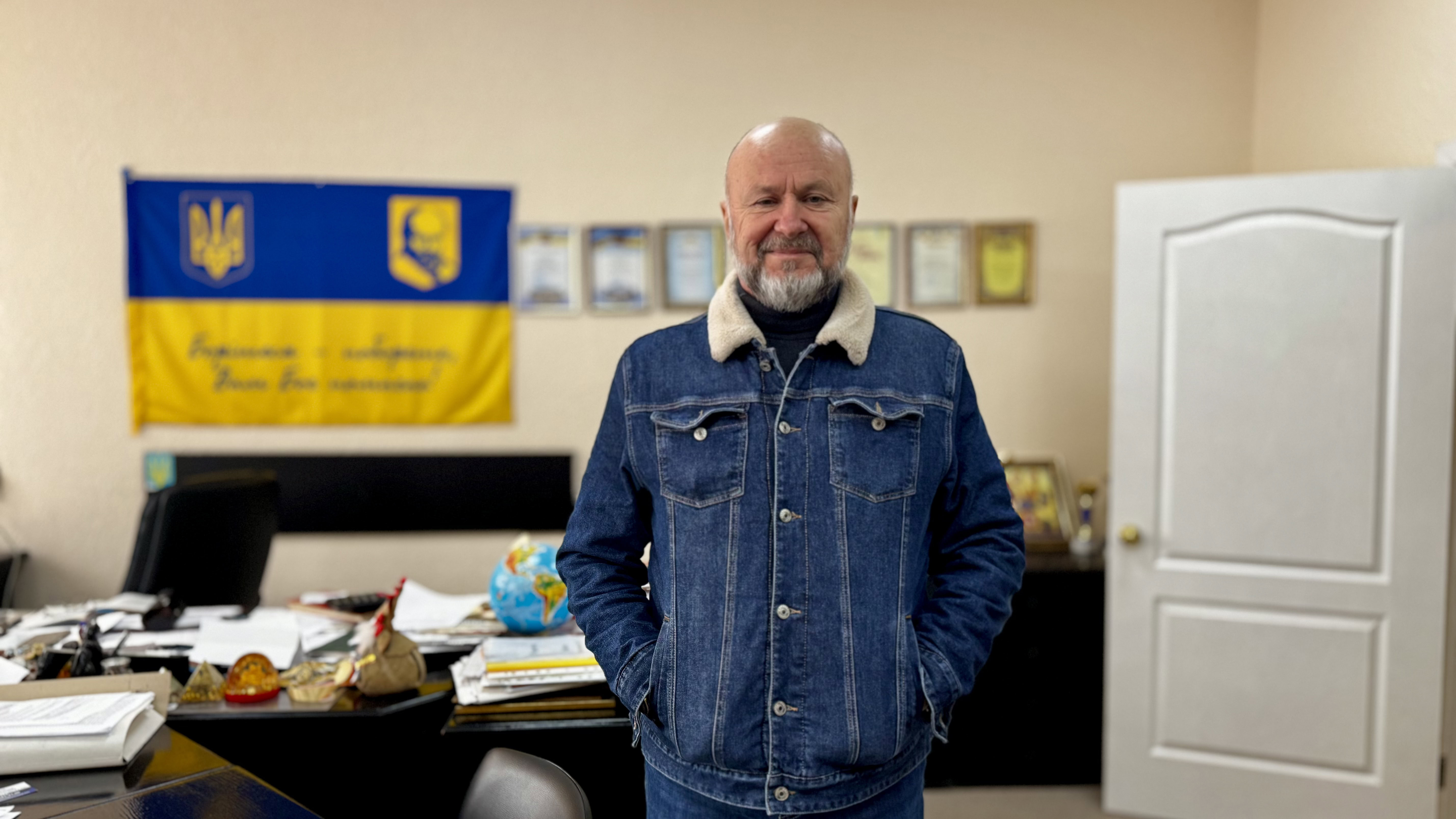 Водить приміщеннями та розповідає про всі тонкощі проєкту директор школи Аркадій Демченко.