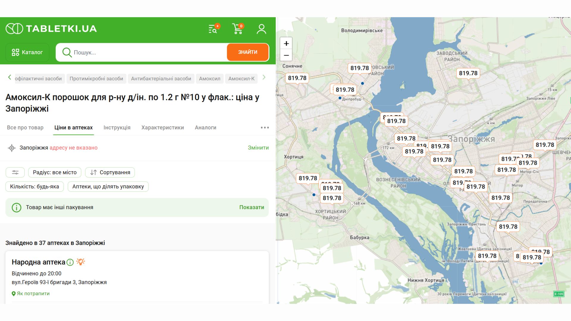 Ми порівняли ціни на ліки з ринковими, і знайшли націнку на препараті Амоксил-К. Лікарня замовила 350 упаковок Амоксилу-К. Ціна такої упаковки в Запоріжжі коштує 819 гривень.