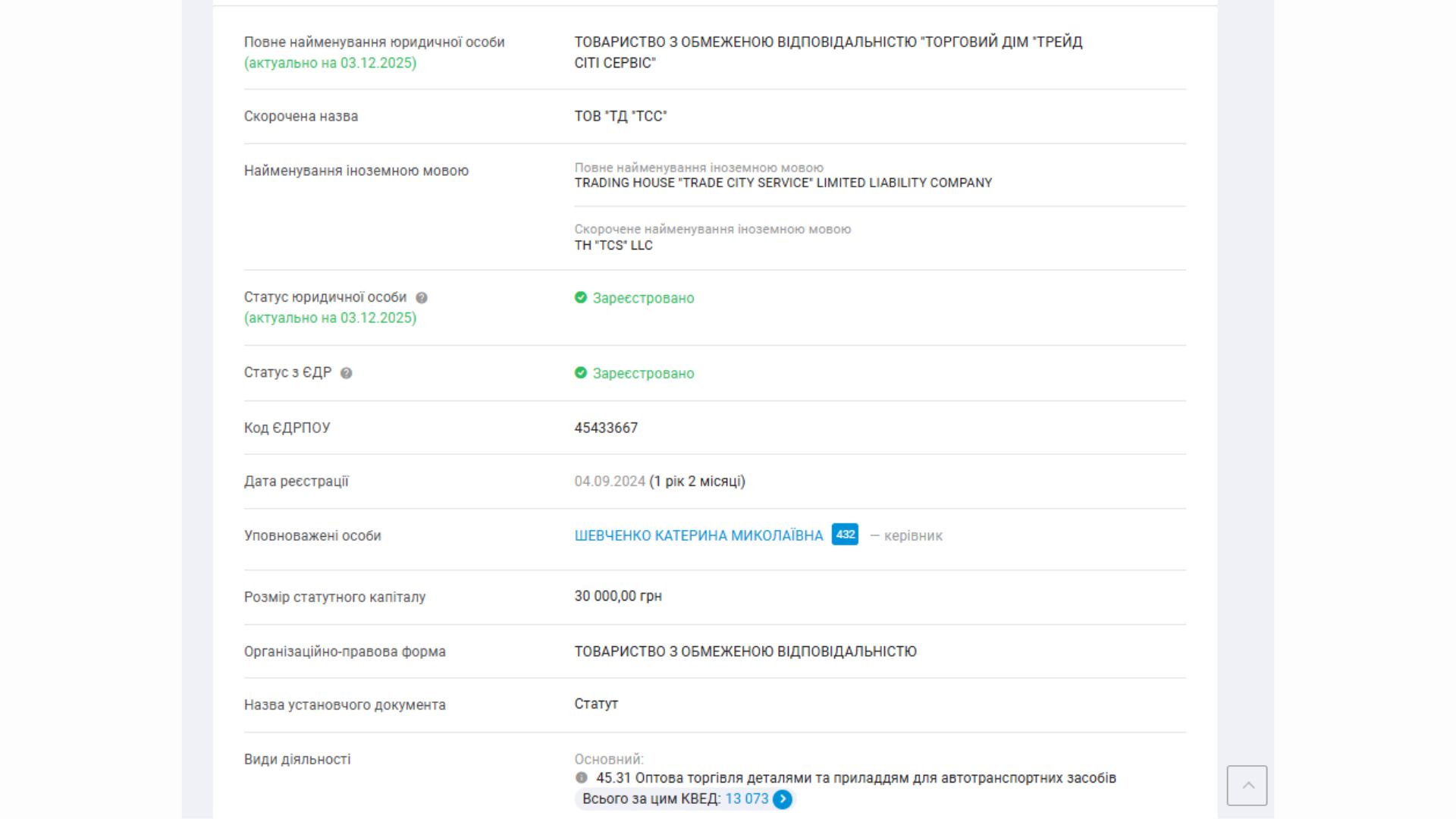 Обласний центр екстреної медичної допомоги оголосило в жовтні 2024 року закупівлю на шини. На закупівлю подалася одна фірма «Торговий Дім “Трейд Сіті Сервіс», зареєстрована в Києві. Сама ж власниця Катерина Шевченко, як відомо з YouControl, зареєстрована в Запоріжжі. Фірму відкрила за півтора місяця до закупівлі.